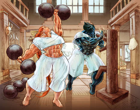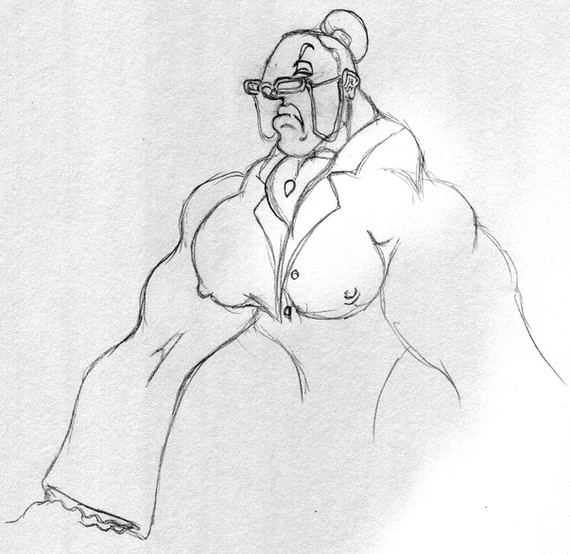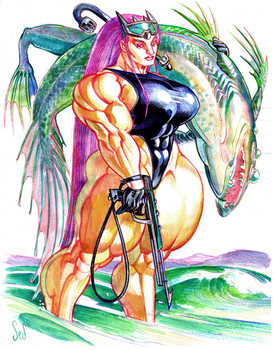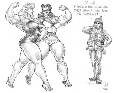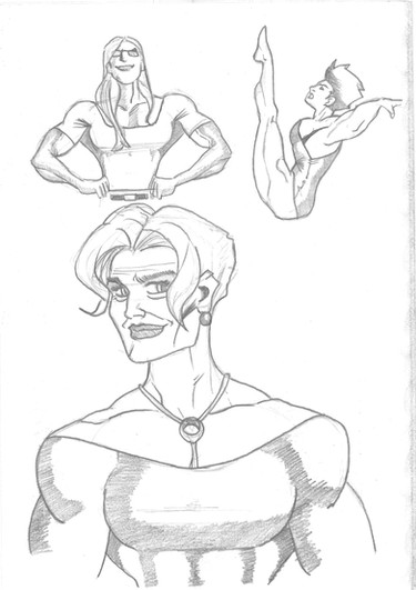 She is in development as a character. My idea for her currently is that she is in the future, and is genetically engineered for for bigness in the muscle department. After falling off the end of the conveyor belt at the genetics lab she is left to her own resources and knocks about in various space jobs. Not too detailed as of yet.