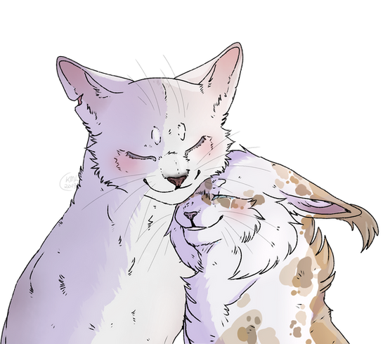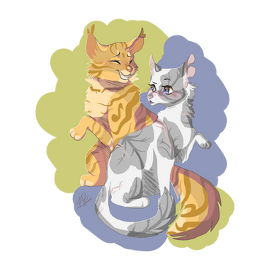 I honestly don't understand how I'm only just now seeing this but I am. Anyway I freaking love this piece! It's sweet to see Brightheart and Dandelionfur so happy. Also I absolutely love that explanation you gave! Brightheart deserves an apprentice and it's a shame she hasn't gotten one in canon.