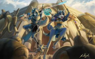 #sword #magic #anthro #axe #castle #deer #fantasy #female #furry #kemono #male #rain #wolf