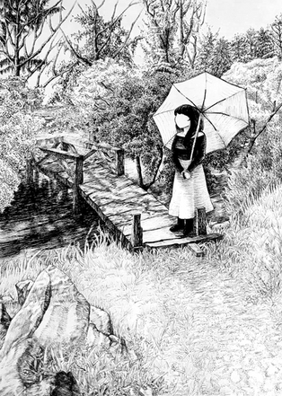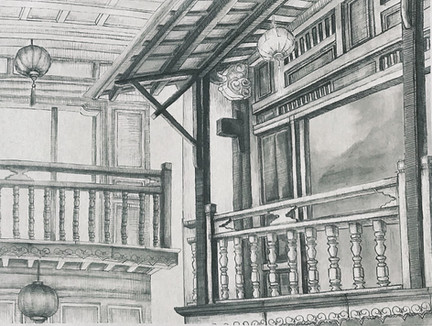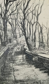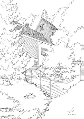[SOLD]I sketch stairway to a library.