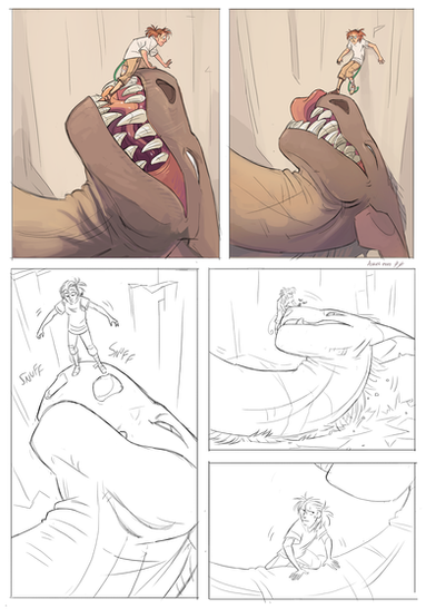 Thank you for the suggestions! I've read quite a bit more on sequential art since doing this piece so I'd probably do all sorts of things differently now were I do this again.
