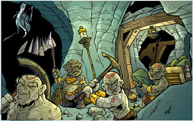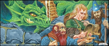 I always wondered what was going on with the figure on the right. Obviously I've since become aware of the old belief that dwarf women had beards. Or was it that Redbeard found himself some fancy new quality armour, and thought "It may have been built for a wee lassie, but ahm not too proud ta wear it!"