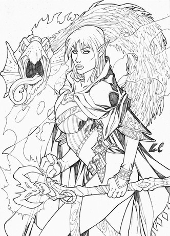 This is the first phase of my re-creation of the back cover artwork from the AD&D adventure module D3: Vault of the Drow. It's one of four color cover pieces that I'm re-creating as part of my latest Kickstarter project. As in the original piece, I'm beginning with a black and white, pen & ink drawing on illustration board. Phase 2 will involve adding watercolors to complete the piece.Prints of artwork from my Kickstarter projects are not available on DeviantArt until after the project backers have received their copies.