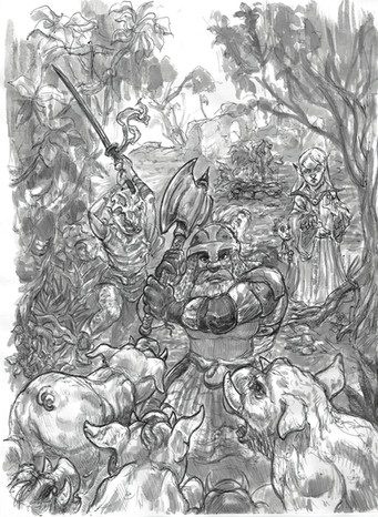The preliminary pencil art that I've done for the cover of the upcoming "Halfling Rumspringa" module for Labyrinth Lord, from Rodent Gladiator Games [link]Related content