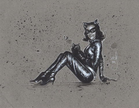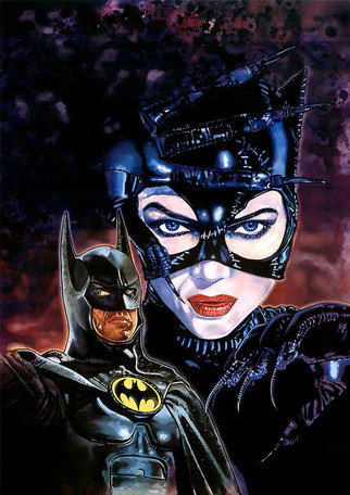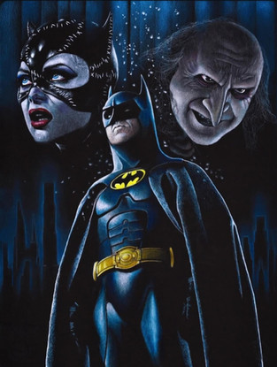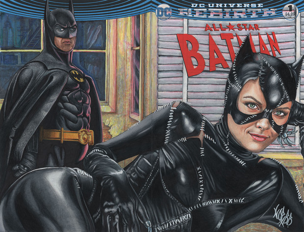 A 'sketch cover' featuring Catwoman, Penguin & Batman, from the 1992 film Batman Returns.