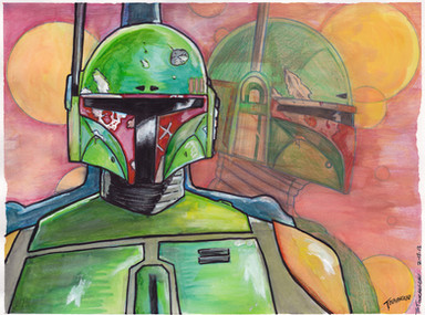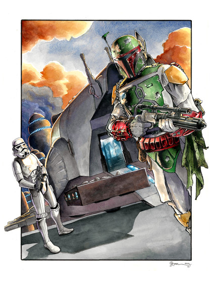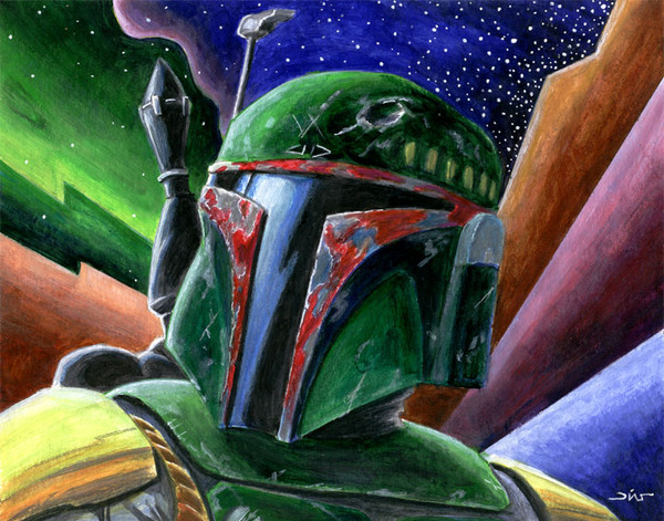 Boba Fett and his ship, Slave One ... from the Star Wars films.