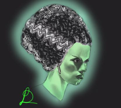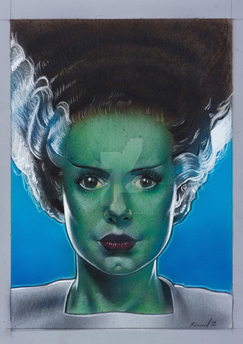 This piece features Elsa Lanchester as The Bride, from the 1935 film Bride Of Frankenstein.