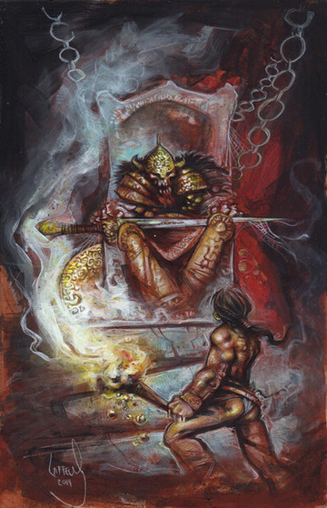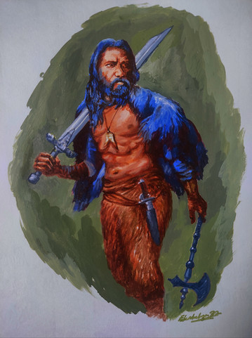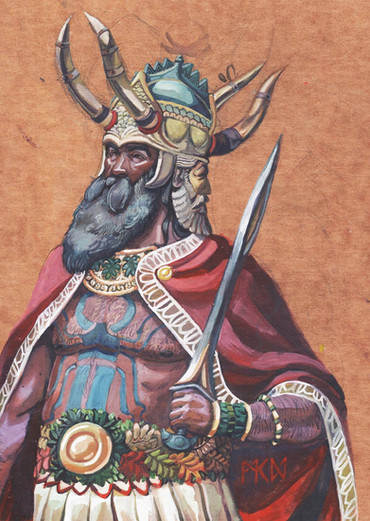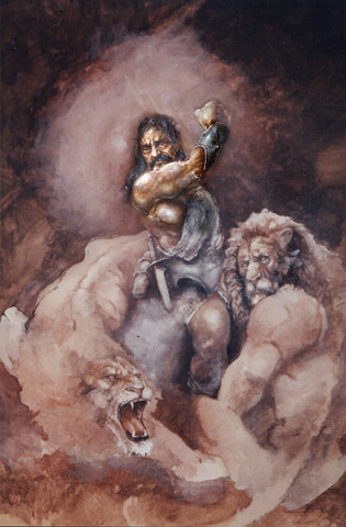 Here he wears the hide of the Nemean Lion. The first of his twelve labors.