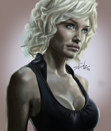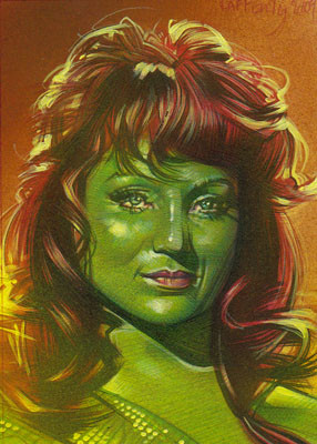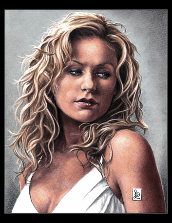 Tricia Helfer from the new Battlestar Galactica Series. She’s a cylon infiltrator, capable of adapting to human form and emotions. I’ve got to thank Lance for this one, he commissioned her and it was great fun to do. Battlestar Galactica is another show that I had not seen, but now I’m quickly becoming a fan of.