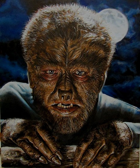 Lon Chaney jr. in his dual role as the Wolf Β Man & Larry Talbot ... From the 1941 film, The Wolf Man.