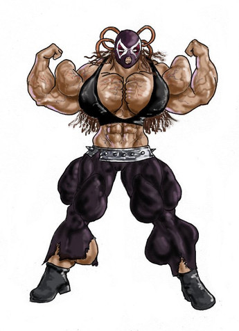 cool she's huge and really tan. nice abs and veins.