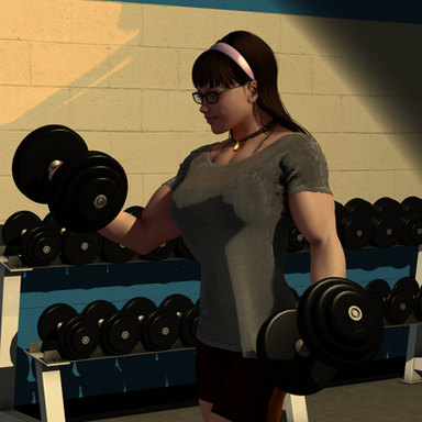 Greta Wisenheimer: What's the matter? Those tiny weights hurting those itty bitty arms?The girls arms at 30 reps had failed her but Greta with her much heavier weights was still going full speed and not slowing down.