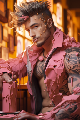 #ai #bodypaint #colorful #cute #gayart #guy #handsome #homoerotic #homoeroticart #hotguy #hunk #male #malebody #muscular #paint #pink #pinkboy #sexyman #twink #gayai #displayed