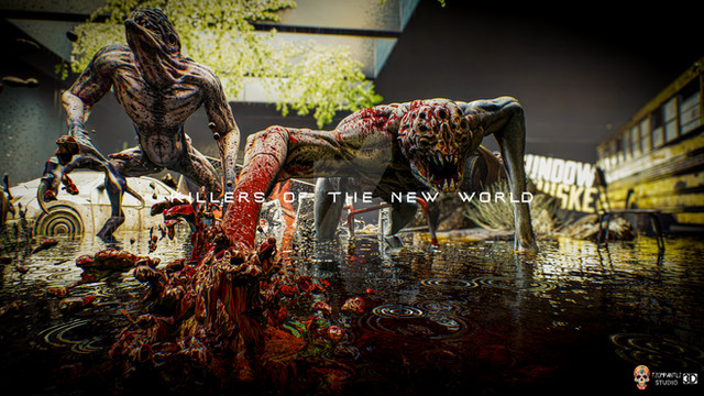 3D Concept art, mock up for a dystopian, ultra-violent, network TV show. Influenced by Verhoeven's movie back catalogue....which was also in the briefEverything created in ZBrush and After Effects