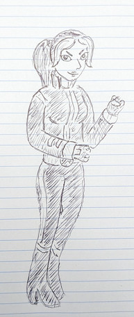 Deca The Multiple Girl (aka Galatea Murphy) from the New Atlantis High game (think Sky High or Teen Titans without the camp...). In progress rough - showing what I can do with a brush pen - believe it or not, the inking took me about five minutes, as opposed to about two hours with pens. I am, as they say, duly impressed. Thanks to for the pen!Related content