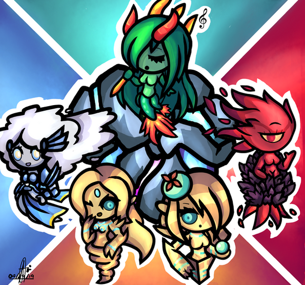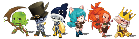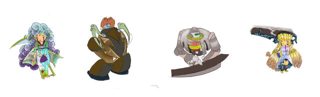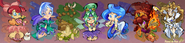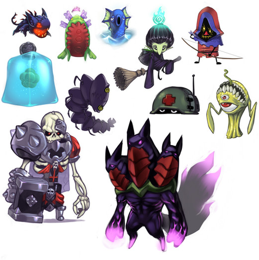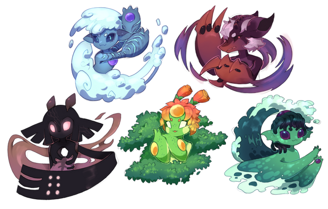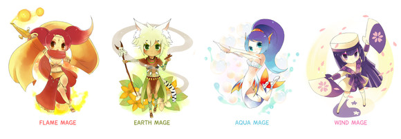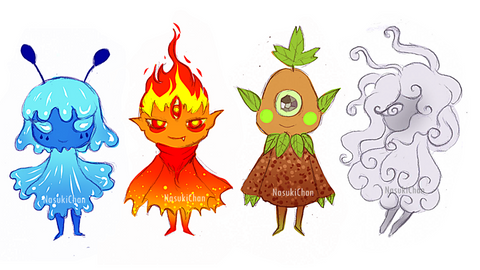 Really charming designs, especially the fire & water elementals. Though I can't help feeling that I've seen the water elemental somewhere before in Grimm Grimoir?