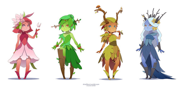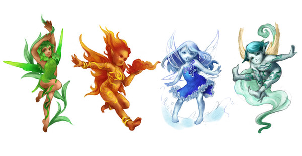 Great designs but, care to describe the elements to us (i know which is fire, water and earth but the flower gal makes me wonder about her element).