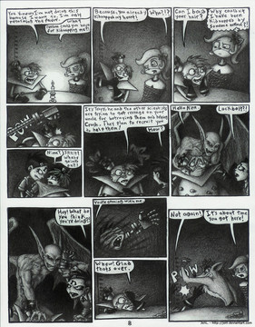 The story is starting to pick up now. Nina meets Lockbolt, a shadow gargoyle who wishes to help her be more evil. With the help of a new winged ally to return her to N. Sanity Island and a chance to kill her enemies, Nina couldn't be happier. ^_^The amulet that Lockbolt gave to Nina does serve a purpose, but you wont find out what until later. ^_^