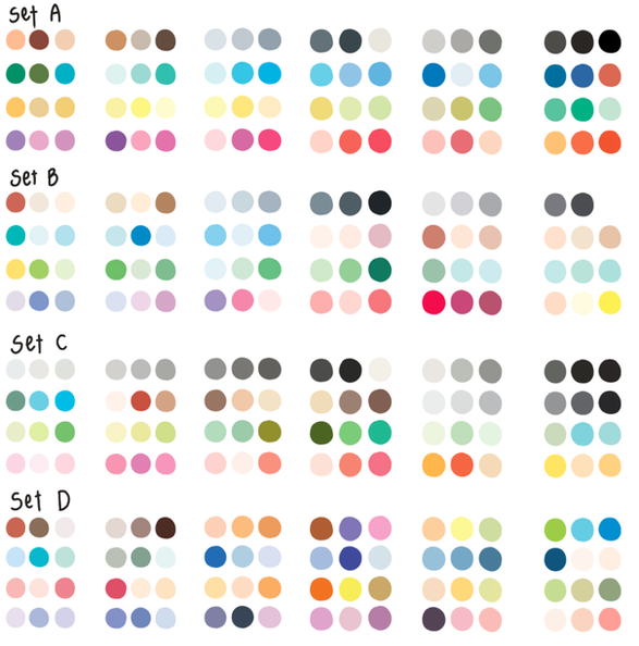 Third row; Peach . Inside of ears | 1st pink . Lighter pink on cream | 2nd pink . Medium pink on cream | 3rd pink . Darker pink on cream | Saturated pink . Nose