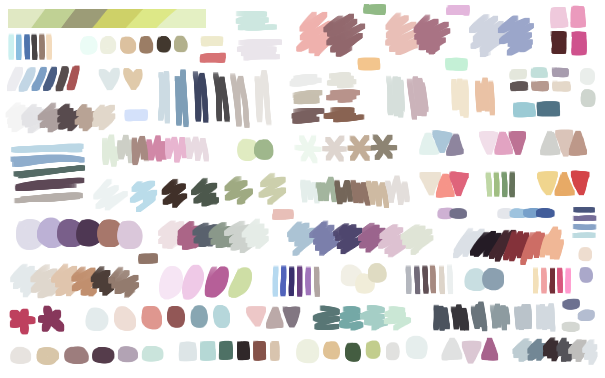 First row; Light pink . Base color + Lightest color on cream | Medium pink . Lighter markings | Darker pink . Darker markings + Pink hair streak