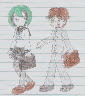 Aww I think the one on the left looks so cute ^^ Blue haired one has a cheeky face too, lol. Is this a fanart then?