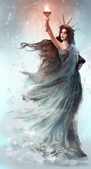 I love how you did the feather effect with the details along with the textures.Β The background look so incredible, I love how the dust and the smoke create the movement around her.