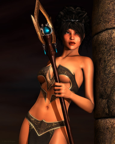 This image was thought to be the main promo image for my upcoming Female Iray Body Jewels, but for DAZ it's too much skin unfortunatly. Damn, I really have a problem promoting these.Anyway, this is Stephanie 4, hair by 3DCelebrity, staff by DM, rendered in DAZ Studio 4.9 Iray with postwork for the background in Photoshop.