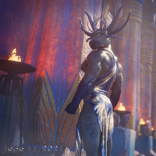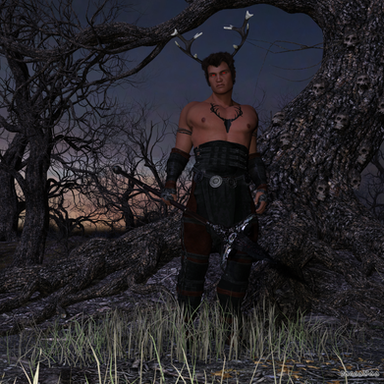 Michael 4 with my Orso M4 texture and custom made Strand-Based chest and arm hair, Druid clothes for M4 @Xurge3D shop, except for the skirt, I sewed and draped that in Marvelous Designer, for this scene not so artificial environment by Stonemason - all prepared for and rendered in DAZ Studio 4.14 Iray with slight postwork in Photoshop.I made adult versions of this scene with opened skirt for my Patrons at Patreon - in HQ 4000x5200 px of course, not posted yet, but soon.