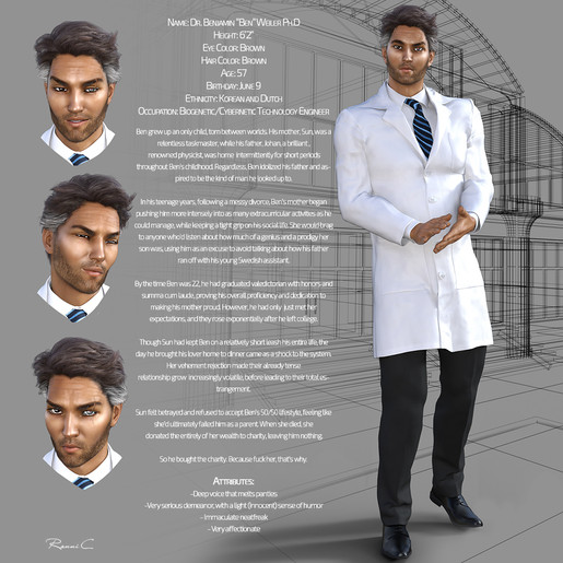 Just a first glimpse on my new character JP Sandor for G9.He has Hungarian roots and is a picture of a healthy and athletic male, intelligent with two doctor grades in Medicine/Surgery and Psychology. Beside his life-filling profession he likes swimming, skiing and riding. He's a dream husband for every woman and man not only because of his well filled wallet, various realties and rich family background, he also has a friendly and calm nature and stunning charm.