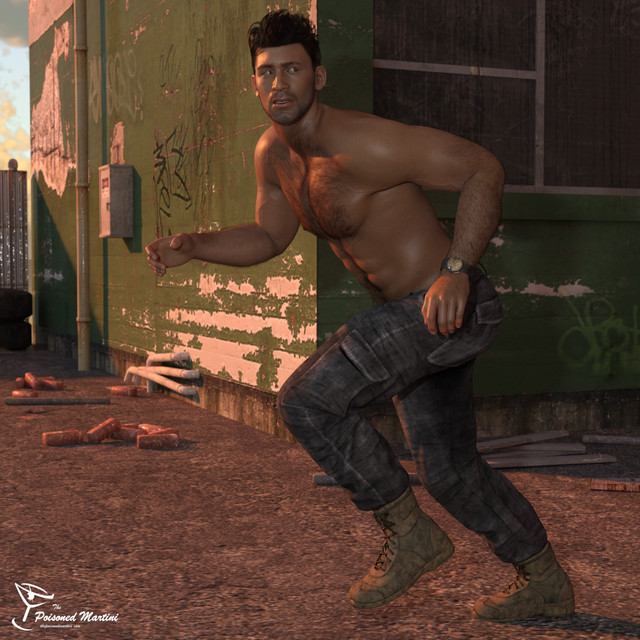 A render in between with new guy in town and one of my new Bodyhair Geoshells in combination with Real Hairy fibermesh, some of my Cinematic Props in background, rendered in DS Iray with color adjustment in Ps.Thanks for viewing!