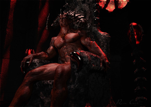 I love his beautiful horns, he's such a powerful and attractive character! It's so lovely the way his golden cloak spreads out around him. This is a really incredible scene!