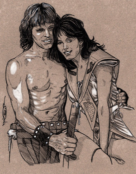 - Ken Kelly. Here's where my honorable mention falls. At the beginning of his career, Ken's paintings were haunting in the the kind of way they could have been bastard Frazetta creations. The piece pictured here is from the cover of the Berkley Conan collection of Red Nails, and to me is his most powerful piece. His covers for Berkley continued to draw me in to reading even more Robert E. Howard stories, an even bigger influence in my early years.