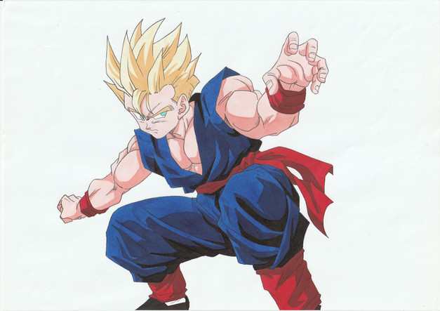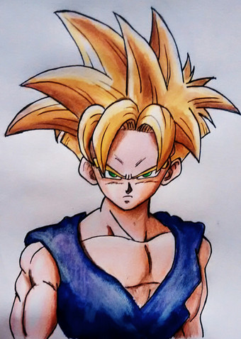 Gohan - Watercolor on letter size paper.This looks awesome in actual, but after scanning it looks horrible, maybe i should have stick to watercolor for the outlines, the gel pen must have ruin it or i should have used a much thinner point, i used .05.