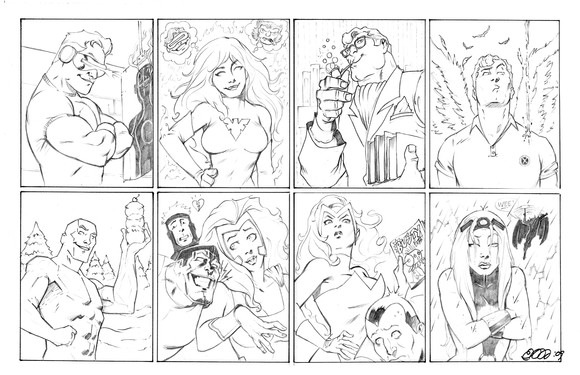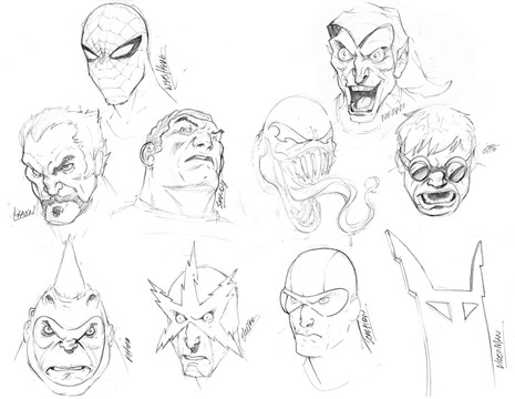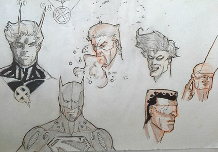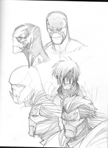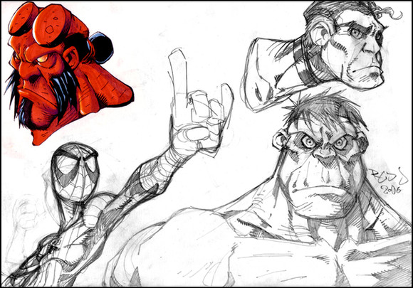 Bats and Dredd rock!... Green Arrow so cool. The Thing looks skinny, he reminds me of a velociraptor. Cool sketches.