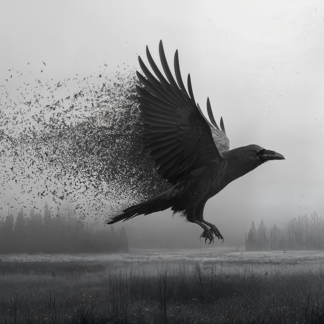 Very powerful picture! I feel the crow move with such strength and those little details... for me it feels like the crow is flying out from some surreal world, coming alive... it reminds me so much of my book... wow, this one really inspired me, I guess I am going to write something right away. Very, very inspirational work!