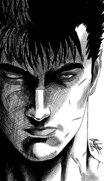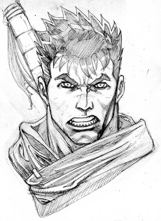 Beautiful study of Guts. I envy your mad crosshatching skills.