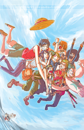 What I love about this is that it has the entire crew, but it looks like one of the earlier chapters, like from 1-50.