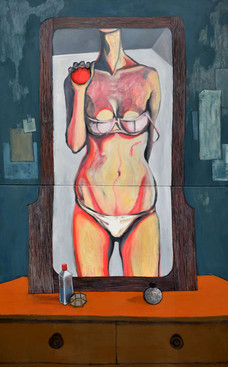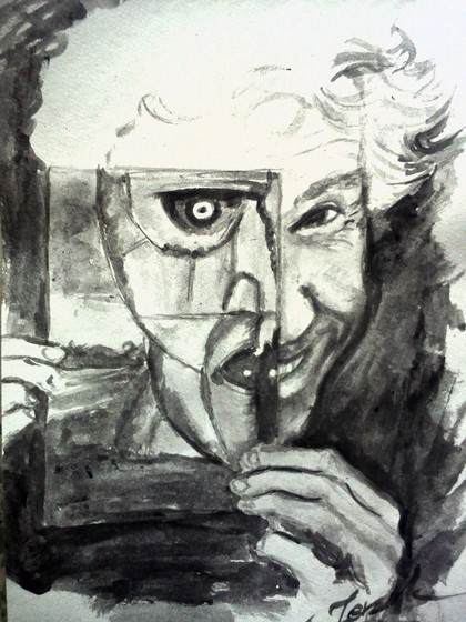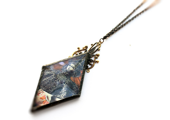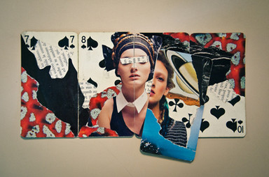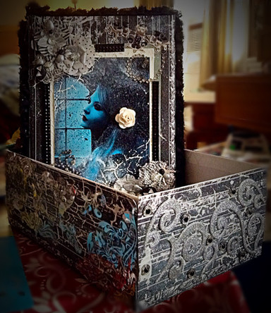 About 20x20 cm. Distinction at international miniature biennale Włocławek 2016.Birch, cardboart, acrylic paint, copper tape, solder, glass, polymer glue, moss
