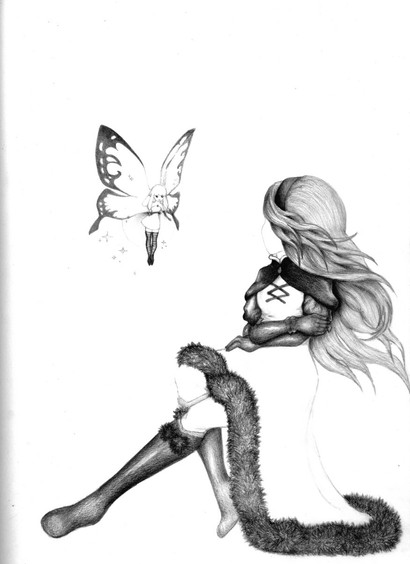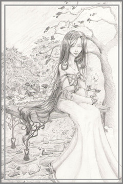 this pic is very beautiful. i like the way es simple, there's not so much detail that yur blinded and can't see the image yur supposed to focus on. the soft ur pale colors are very relaxing also, es not something i see often. also her dress is very plain and pale, which makes it pleasing to look at ^^ it looks soft and flowy