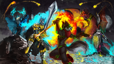 It´s Alec battle ready! - featuring the whole crew Nitro getting ready to strike a blow and the lovely Kishara right up on the cheering! A Fun contest between friends! And hopefully no one´s getting hurt! - Requested by [iSkimike – Thanks again for the support and the artistic freedom man! - it always makes this fun challenges worth while! – It was a really nice triple take and actually the perfect occasion to showcase some off the raw power of the Blade I designed for Alec, and a Take on Fluff Kevlar main character, that just happen to sport an amazing blade and kickass gear- Big shout to you man, keep up the good work!