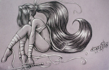 So fierce...and yet so gentle. I love the sharp angles and solid shading in the hair because it makes the form stand out in a very arty and antique way.