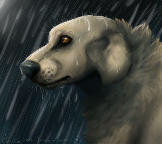 This is gorgeous, your improving everyday, I love the pose your anatomy is just great, and the expression really adds to the sad atmosphere of this amazing picture. I love the shading, I think the way you shade is just excellence rolled into a package, and the eye is gorgeous. I love the aqua blue shading, and I adore how the rain is coming down, seeing that blue light it's kind of like an angel light I suppose XD It's a simple back ground, but one that makes this picture look great, I envy your skills haha. But this is such a great picture, I love it keep up the great work and their should be mores faves and comments heading your way