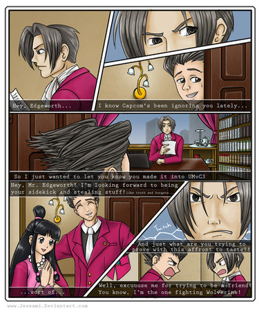 Originally, it was going to be three panels, ending with Phoenix passing out while talking about medieval settings and witch trials, but it wasn't really worth the extra panels.