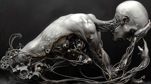 Awe inspiring! So mechanical yet naturally human. Very striking and perfect combination of human form and mechanical elements!
