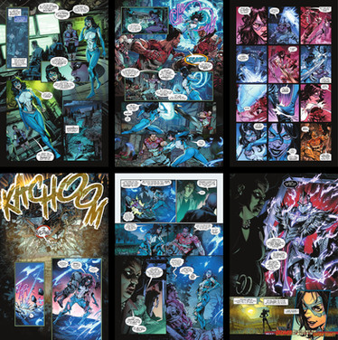 All of the images in the image above are snippets from a few of the various comic books and graphic novels I lettered. List of comics featured: