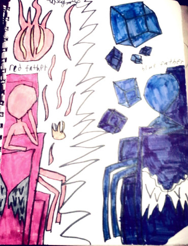 Some where in the story, Moroxite freezes herself and green agate in an impenetrable statue of black ice, that only Moroxite can unfreeze, but she is now unconscious from being in the ice. After a couple years of being trapped in it, green agates and moroxite's gem had become one. This happened because both of there gems are on there palms, and while being frozen, they had been holding hands. So, after years of being in the ice, there gems had fully become one, and she was finally able to break out of the ice. My gems Purple Tourmlaine, Zosite, Red Agate, Green Agate, Gaspeite, and Howlite all share the same base on earth. So, they had put the block of ice that held Moroxite and Green Agate in the base. After Chrysocolla had broken out of the ice, she has absolutely no memories of being either of the gems that fused to make her, but she does remember the other gems. So, Chrysocolla is basically unfuseable , and has caused some trouble. While my gems on earth have one goal, which is to get back to homeworld, Purple Tourmaline has a different plan. She wants to fuse with Zosite and Chryscolla, which are the two strongest gems besides her, and try to take over earth. They do end up fusing, which I will show Later, but they are such an unstable fusion, that just after ten minutes of being fused, the fusion ended up trying to destroy itself by screaming after red agate had tried to get a hold of Moroxite while being stuck in both fusions of Chrysocolla and the giant one I'm going to say later. He does end up talking a little bit to Moroxite, but like i said before, this fusion is completely unstable, and even tried to kill Red Agate to stop Moroxite from talking and messing with the unstable fusions head.