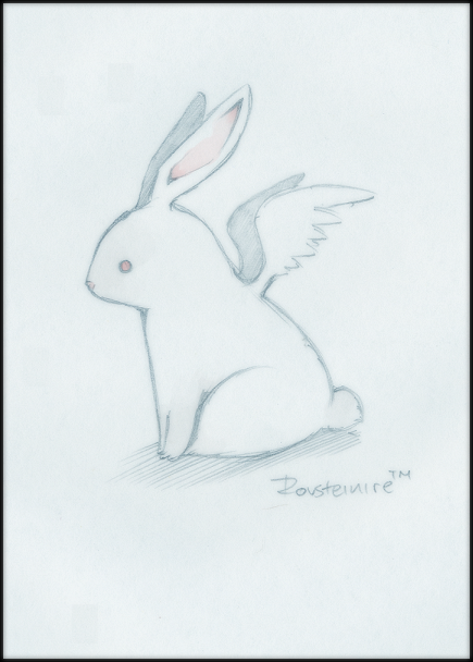 Great drawing, scary concept A bunny with wings is a little strange, but cute all-the-same. Hey, didn't that little thing on Tenchi, that anime that came on Toonami a loooong time ago, fly? I can't really remember