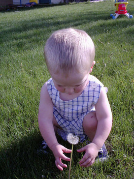 ok, so he doesn't look much like a nature boy with his nike jacket it on, but he's wayyyyyyy proud of those "flowers"The *path* you see behind him is years of a racoon trail that has developed. My son calls it "their side walk"