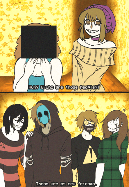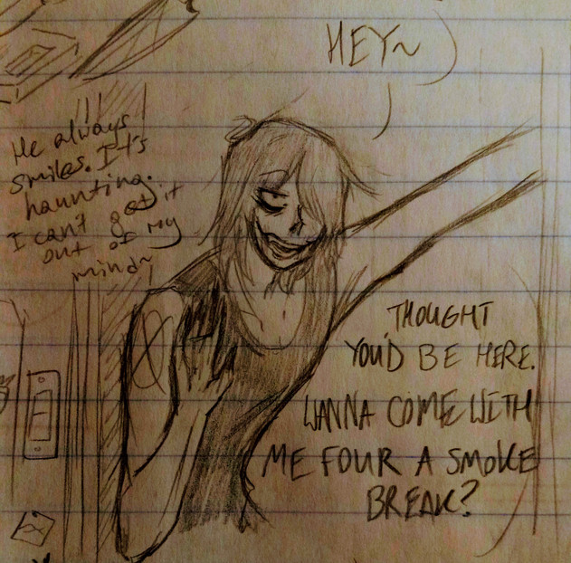 on a more serious note, I had fun making this because it was fun to learn new techniques and methods and put them to use for once, and as a plus, seeing Jeff in color is pretty nice too. I sometimes feel like I'm falling behind in my art because my own little sister surpasses me alot now, she's gotten very skilled at what she does and it motivates me to improve, too. When I showed her the one on the bottom right, she was really impressed, which felt nice. I'm always disappointing myself by never following through with half the pieces I start, so it's good to know I have the ability to make good art, I just need to put a little more time into it. I don't mind that, actually, I've just been so caught up in everything. I want to make the most of the time I have, but then I end up hating the things I make and scrapping them, which enforces a cruel cycle.