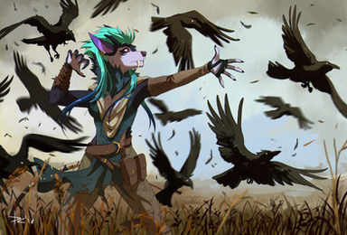 The DOF effects you have here are incredibly well done and do a nice job of conveying distance, and the way the wind is interacting with the feathers, cloth of the clothing, and hair clearly has effort put into it and is very detailed. Amazing job.